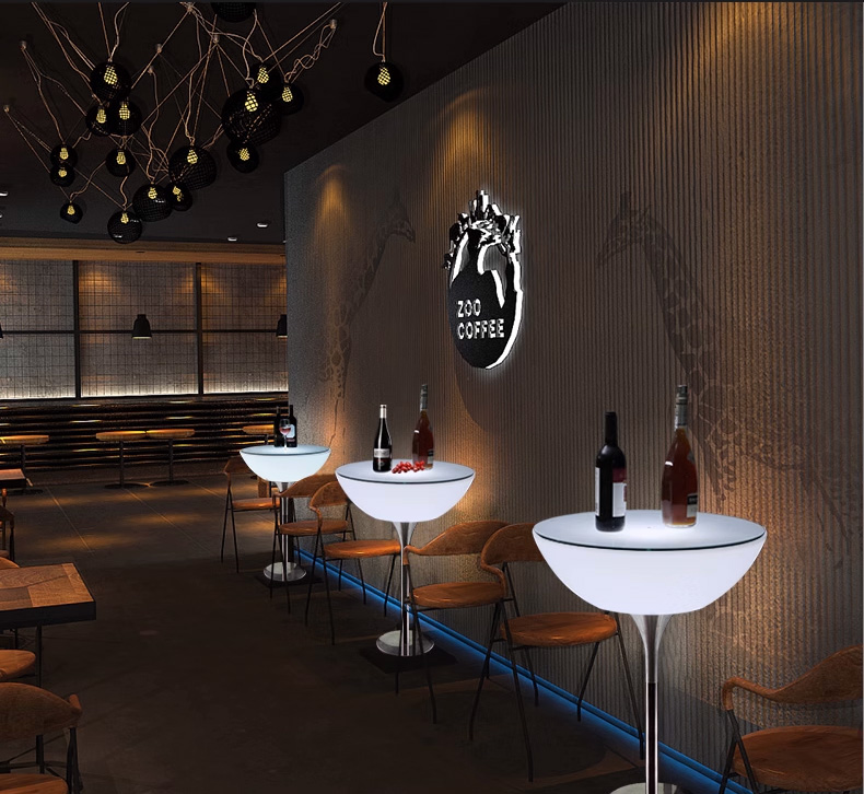 Стол светящийся круглый на металическом основании 80х80х110